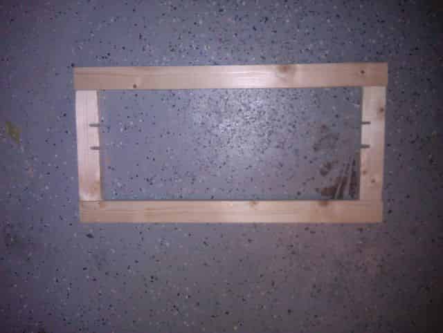 Upon building out the equipment rack, we turned our attention to mounting a frame inside the cupboard that we would attach the hinges and magnetic clasp to. We wound up making the frame out of the excess 1”x2” lumber we had left over from the equipment rack. Our plan was to make the frame as tall as the inside of the cupboard and about the same width as the equipment rack. In order to install it we would screw the frame into the top and bottom of the cupboard.