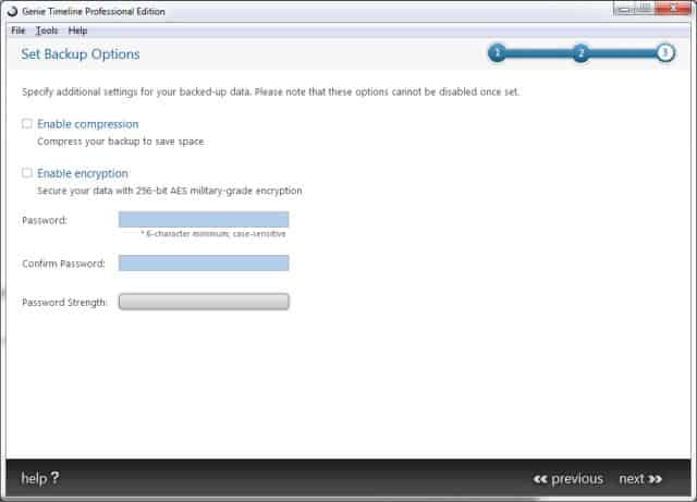 - Set Backup Options: On the third and final step, you get to choose whether to compress and encrypt your backups. Since I was doing compression on my FreeNAS box, I decided to go ahead and leave this option unchecked. I found out later, that leaving the compression and encryption options disabled made it very easy for me to poke around and look at the backup files. In the event I needed to restore something manually, I could do it.