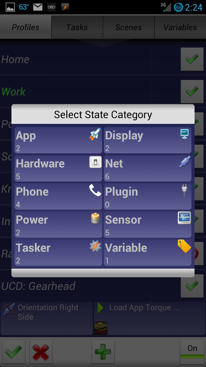 - Tasker: As I have raved about in a number of my articles, Tasker is my favorite Android app of all time. In order to create this Gearhead-themed Car Dock profile, I will rely on Tasker’s functionality to determine when the phone is in the car, enable Bluetooth and launch the ODB2 app.