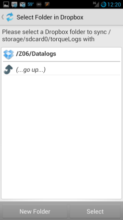 - Select the local folder where Torque is saving its logs (/storage/sdcard0/torqueLogs on my phone)