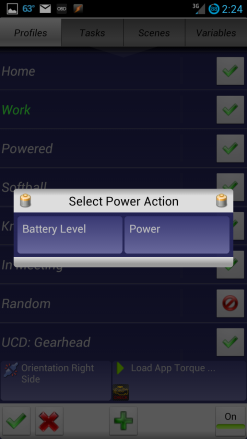 What we need to do at this point is to use Tasker to perform the following: detect when your phone is in the Car, then open the Torque application to begin the displaying and logging the data from your ECU, and finally determine to force sync your data logs folder.