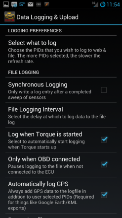 We have configured Torque to automatically open up in its Dashboard and also to start a new data log once it connects to the ECU. Additionally, we have used DropSync to pair up the local Torque logs folder with a folder up on your DropBox account.