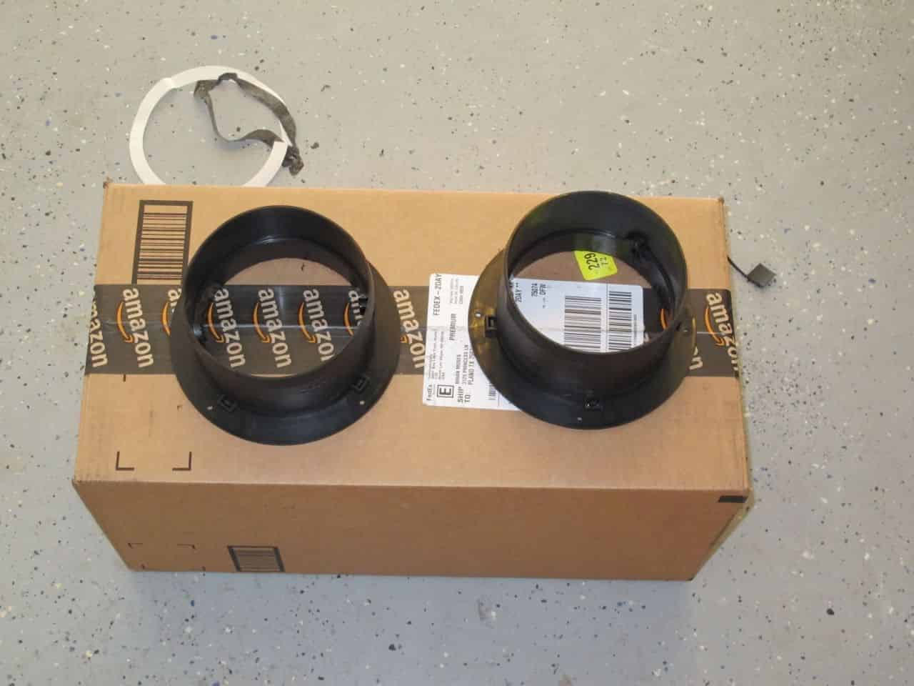 Unfortunately, DIY newbies like myself should never launch into a project on a whim. When we got home, we soon discovered that the exhaust ducting that came with the A/C unit was 5 inches. We made a couple different trips back to Lowe’s and Home Depot looking for 5” ducting bits and pieces and basically struck out on what we needed. So on a lark, we decided to use some things we found around the Lowe’s to adapt down from 5 inches to 4 inches and hooked up all of our duct work.
