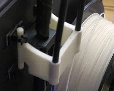 In addition, I decided to add an alignment bracket for the filament to the printer. The bracket restricts much of the travel of the two filaments and acts as a guide for the filament as it goes up through the tubing towards the extruders. The bracket ends up reducing the likelihood of tangled filaments during a print. At TheLab.ms, we had a couple occasions where the filaments became entangled because of how far they traveled throughout the various print jobs. On at least one occasion the result was a failed print. We haven’t had any similar failures since using the alignment bracket.