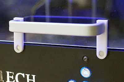 The first difference that I noticed between my QIDI Technology Dual Extruder Desktop 3D Printer and the FlashForge Creator Pros that we use at TheLab.ms is that the FlashForge printers’ doors have a magnetic latch to hold the door shut. On the QIDI Tech printer, the door hung loose without any kind of latch and oftentimes swung inside the printer, much to my chagrin. While surfing Thingiverse, I found an object, the QIDI Tech 1 - magnetic doorstop , which I modified to fit my own smaller magnets. My magnetic door latch does a fantastic job of preventing the door from swinging inside the printer, and the neodymium magnets that I used hold the door firmly shut.